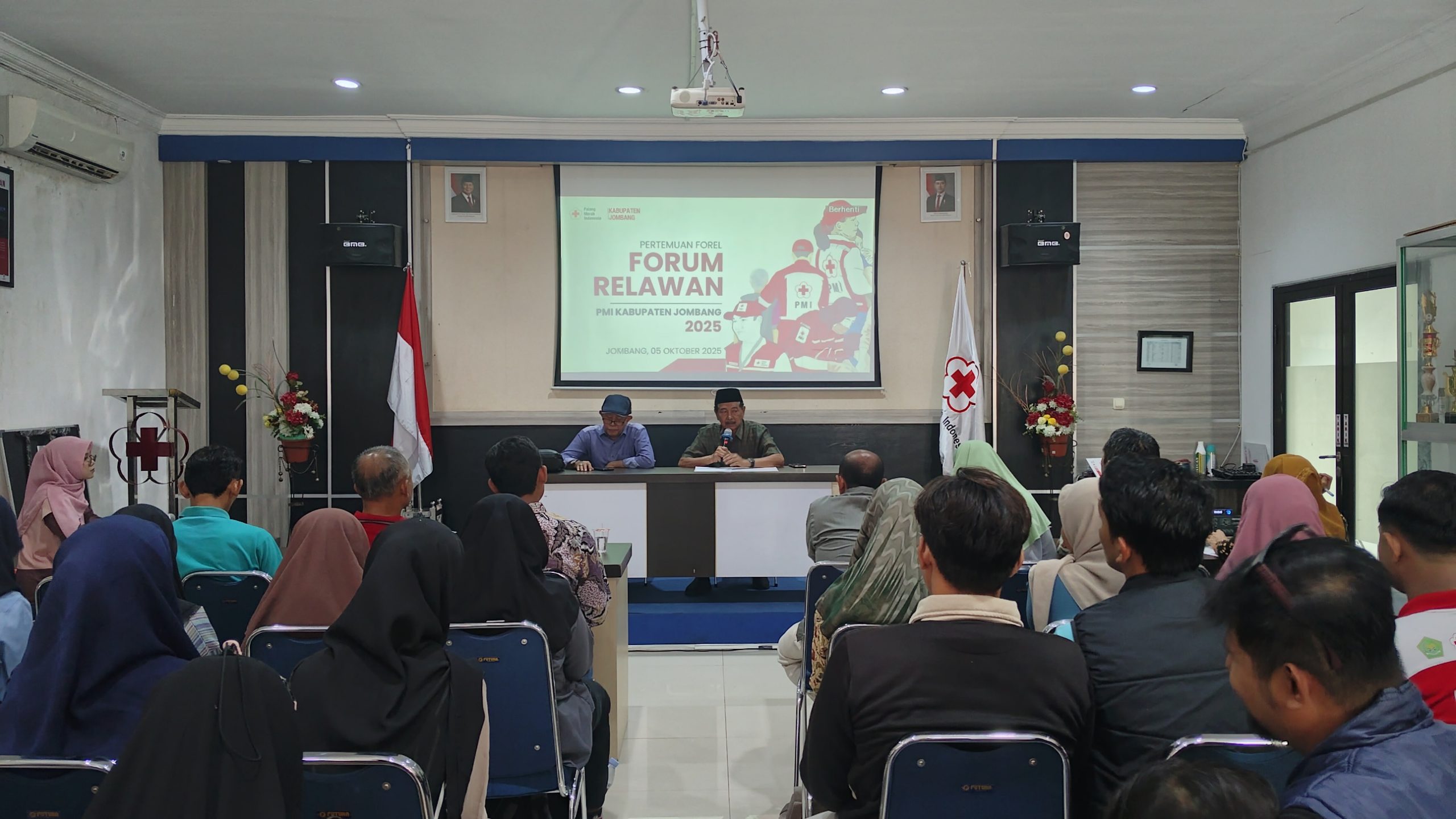 Jombang, 5 Oktober 2025 – Palang Merah Indonesia (PMI) Kabupaten Jombang menggelar Forum Relawan (FOREL) yang dihadiri oleh lebih dari 50 sukarelawan di Markas PMI Kabupaten Jombang, Jl. Adityawarman 45A, Kepanjen, Jombang. Kegiatan yang berlangsung mulai pukul 08.00 WIB ini dibuka secara resmi oleh Ketua PMI Kabupaten Jombang, Drs. Soeharto, yang menyampaikan arahan strategis mengenai peningkatan peran relawan dalam pelayanan kemanusiaan.