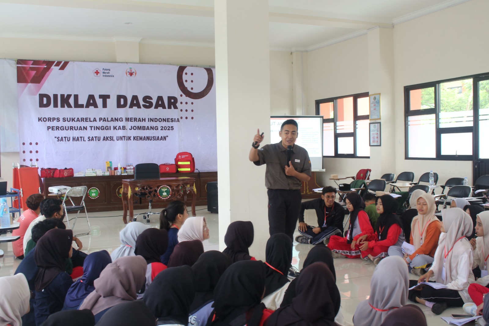 Jombang — Palang Merah Indonesia (PMI) Kabupaten Jombang kembali menggelar rangkaian Diklat Dasar Korps Sukarela (KSR) untuk unit-unit perguruan tinggi se-Kabupaten Jombang. Pada Minggu, 23 November 2025, kegiatan hari ketiga dari rangkaian pelatihan ini dilaksanakan di STIKES Pemkab Jombang mulai pukul 08.00 hingga 17.00 WIB dengan kondisi cuaca cerah.