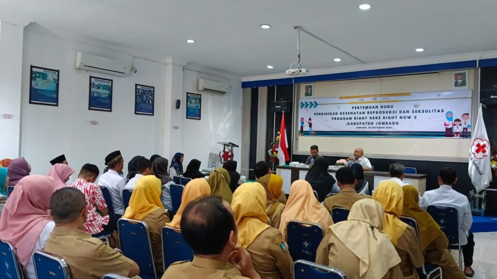 5 November 2024, PMI Kabupaten Jombang menggelar pertemuan penting bagi para guru pendidikan kesehatan reproduksi dan seksualitas (PKRS) dari enam sekolah binaan program Right Here Right Now 2 (RHRN2). Pertemuan ini dilaksanakan di Aula PMI Kabupaten Jombang dengan diikuti oleh perwakilan dari SMPN 4 Jombang, SMPN 6 Jombang, SMPN 1 Diwek, SMPN 2 Diwek, MTsN 1 Jombang, dan MTsN 15 Jombang.