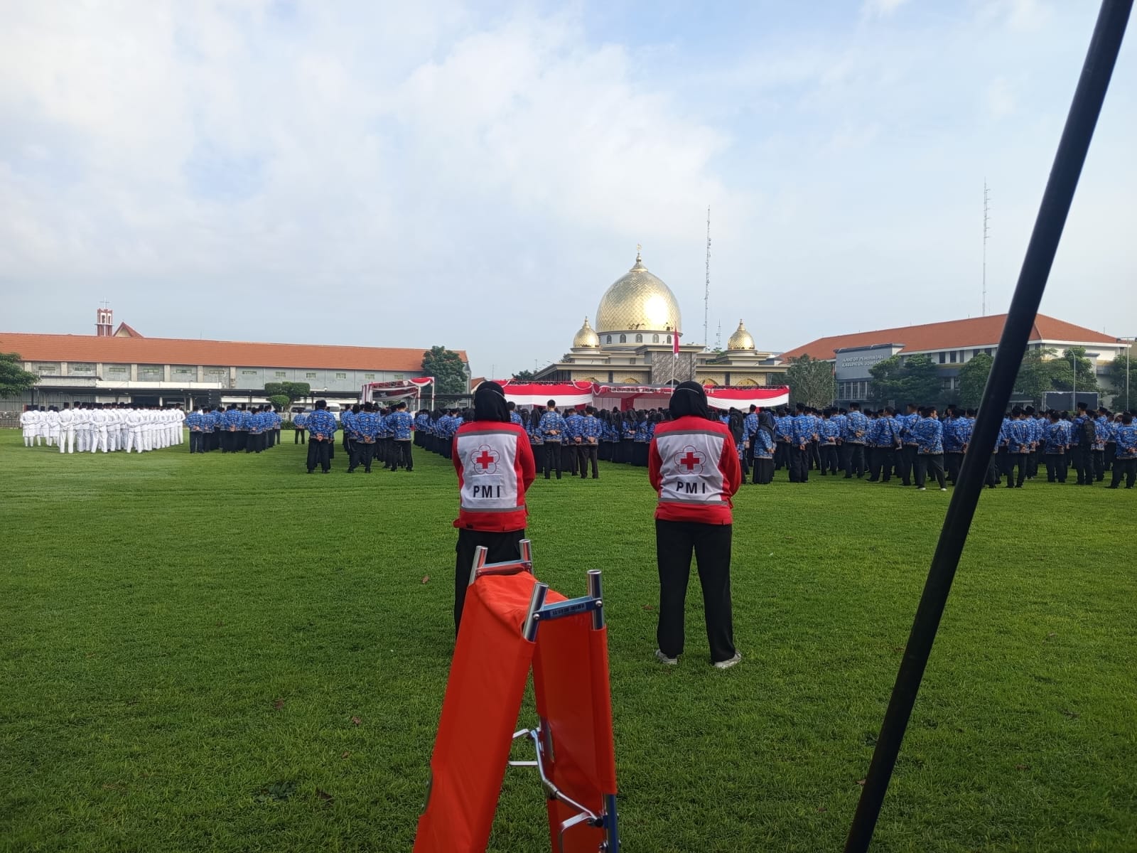 Jombang — Palang Merah Indonesia (PMI) Kabupaten Jombang turut berpartisipasi dalam mendukung kelancaran kegiatan Peringatan Hari Otonomi Daerah ke-XXX Tahun 2026 yang diselenggarakan oleh Pemerintah Kabupaten Jombang bersama Dinas Kesehatan. Kegiatan ini dilaksanakan pada Senin (27/4/2026) di Lapangan PEMDA Jombang mulai pukul 06.00 hingga 08.15 WIB dengan kondisi cuaca cerah berawan.