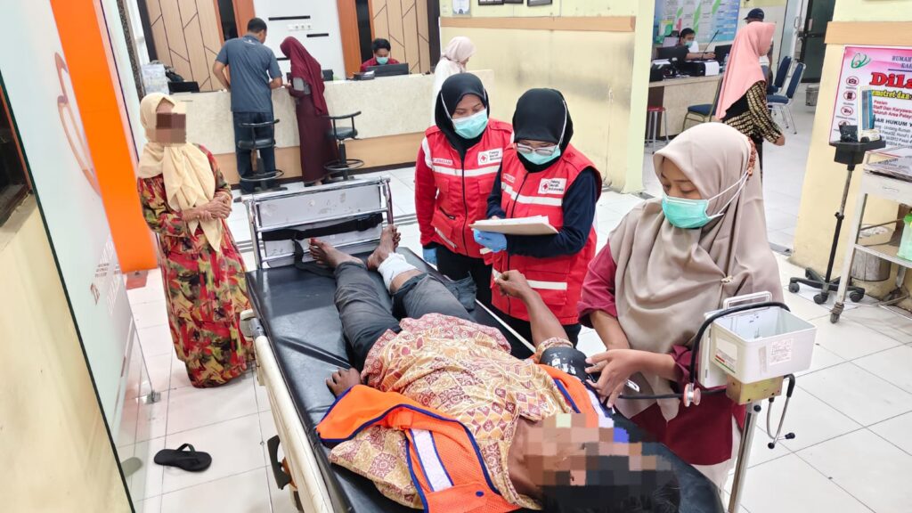 Akibat kejadian tersebut, terdapat dua korban yang mendapatkan penanganan dari tim PMI. Korban pertama, Tn. M (45), warga Denanyar, Jombang, mengeluhkan perih dan nyeri pada bagian kepala serta kaki. Korban diketahui memiliki riwayat patah tulang jari kaki dua tahun sebelumnya. Hasil pemeriksaan menunjukkan tekanan darah 150/70 mmHg, denyut nadi 87 kali per menit, suhu tubuh 36,6°C, saturasi oksigen 96%, serta tingkat kesadaran baik (GCS E4V5M6).