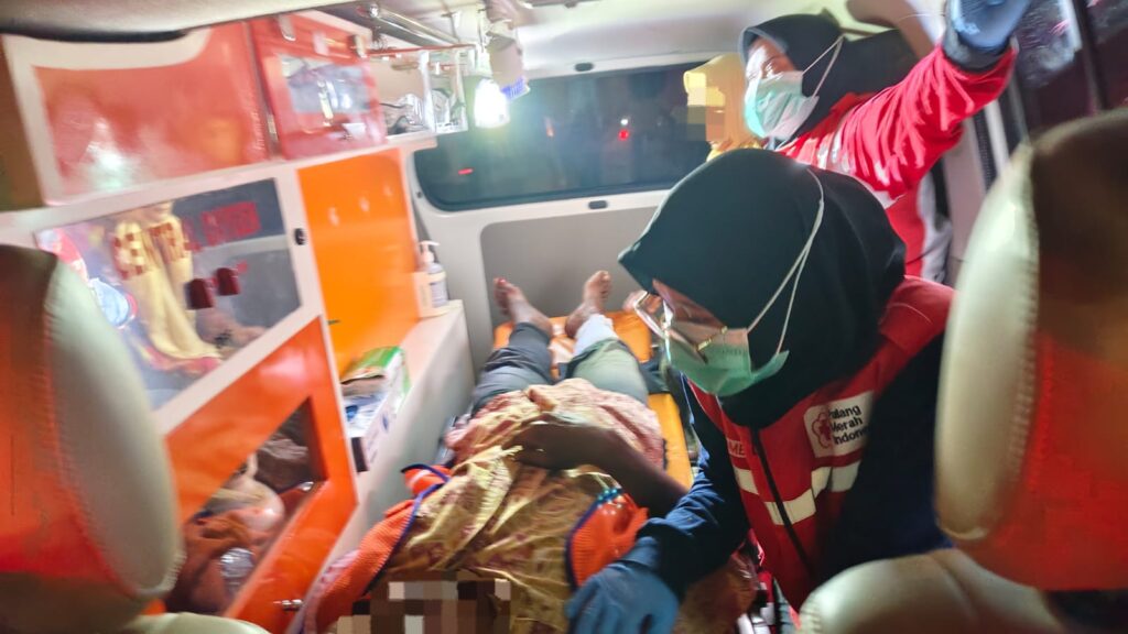 Tim PMI melakukan perawatan luka serta tindakan pembidaian pada area yang dicurigai mengalami fraktur guna mencegah perburukan kondisi. Selanjutnya, korban dirujuk ke RSUD Jombang untuk mendapatkan penanganan medis lanjutan, disertai pemberian dukungan psikologis awal selama proses evakuasi.