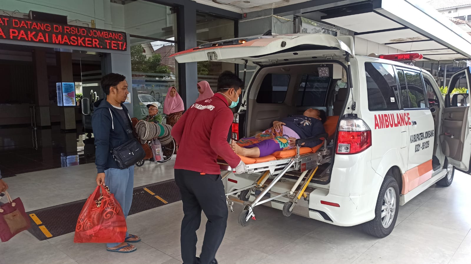 Pasien mengalami nyeri punggung dan kesulitan berjalan, sehingga keluarga menghubungi PMI Kabupaten Jombang untuk mendapatkan bantuan evakuasi medis. Tim PMI yang bertugas, Sindu Wahmuko dan Ahmad Al Farizi, segera melakukan assessment sebelum memastikan pasien dalam kondisi aman untuk dipindahkan.