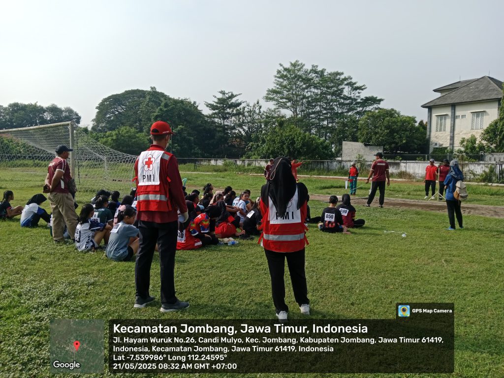 20–21 Mei 2025 — Palang Merah Indonesia (PMI) Kabupaten Jombang kembali menunjukkan komitmennya dalam mendukung kegiatan olahraga pelajar dengan memberikan pelayanan kesehatan dan kesiapsiagaan ambulans dalam pelaksanaan Olimpiade Olahraga Siswa Nasional (O2SN) Cabang Atletik jenjang SMP tahun 2025.