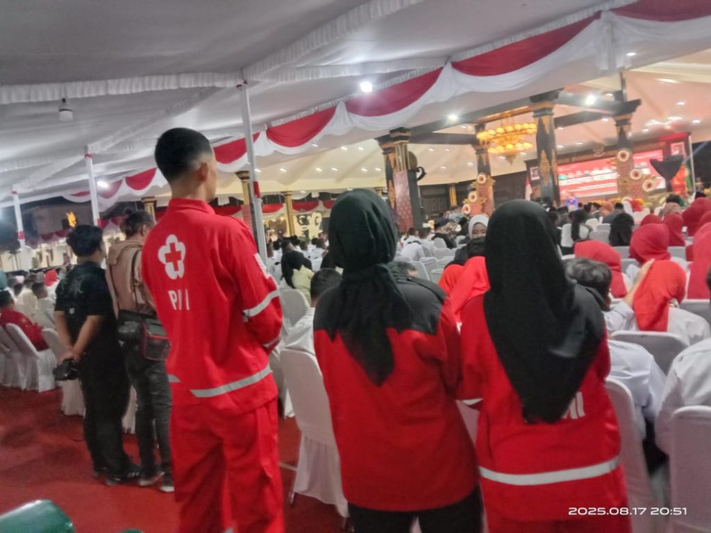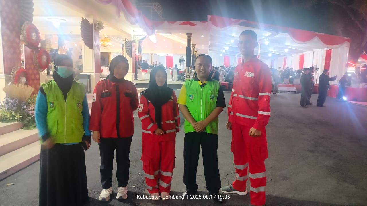 Jombang, 17 Agustus 2025 – Palang Merah Indonesia (PMI) Kabupaten Jombang kembali menunjukkan komitmennya dalam memberikan pelayanan kemanusiaan. Pada peringatan Hari Besar Nasional (PHBN) yang berlangsung di Pendopo Kabupaten Jombang, PMI menurunkan tim kesehatan untuk mendukung kelancaran acara.