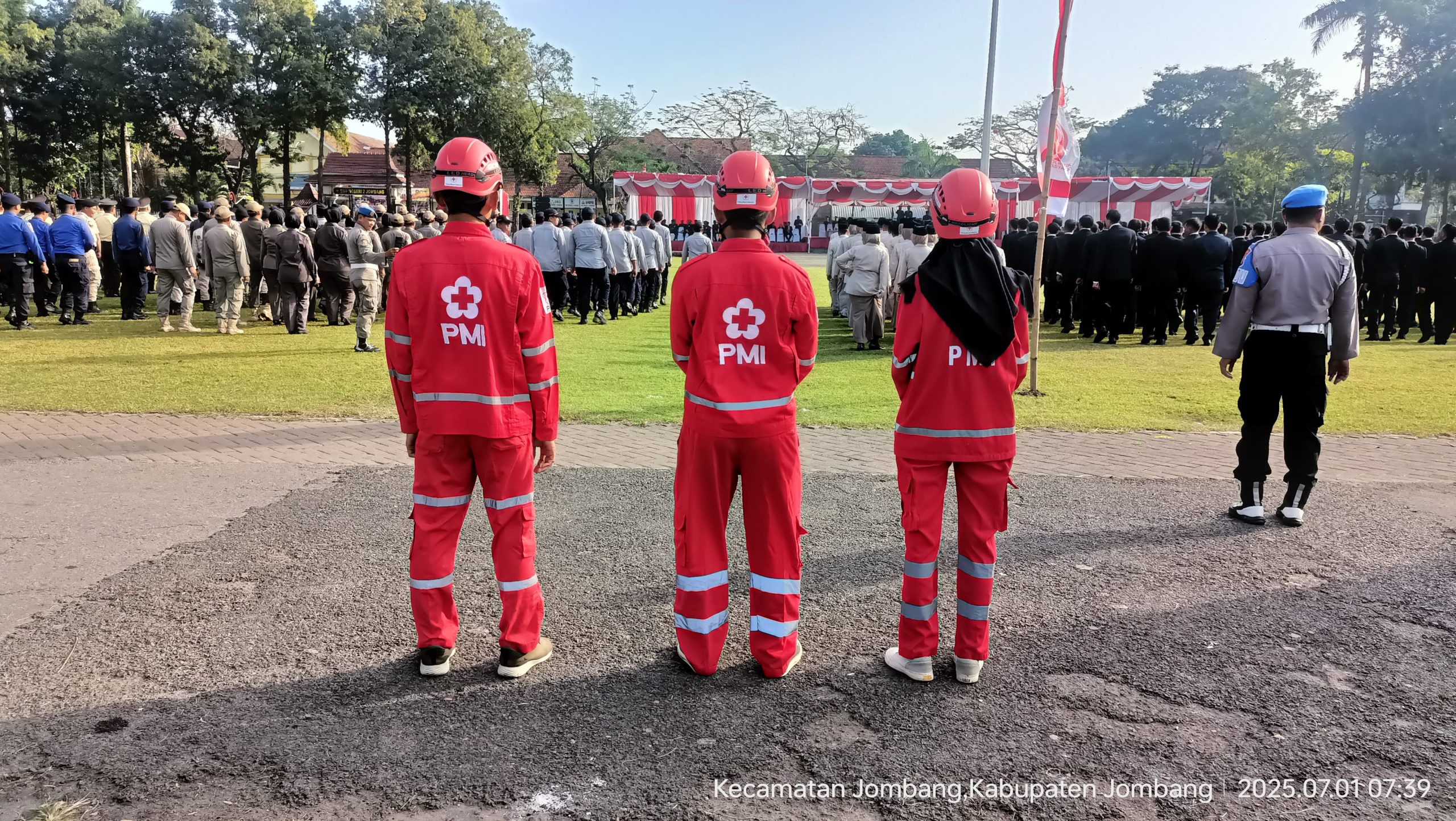 Sebagai bentuk dukungan terhadap kelancaran dan keamanan kegiatan tersebut, Palang Merah Indonesia (PMI) Kabupaten Jombang menurunkan tim siaga kesehatan. Tiga personel relawan yaitu Khafidh Zakaria, Rezha Surya Mahardicka, dan Hana Puspita Sari dikerahkan untuk bertugas langsung di lapangan. Mereka dilengkapi dengan satu unit ambulans yang disiagakan di lokasi upacara guna mengantisipasi situasi darurat yang mungkin terjadi.