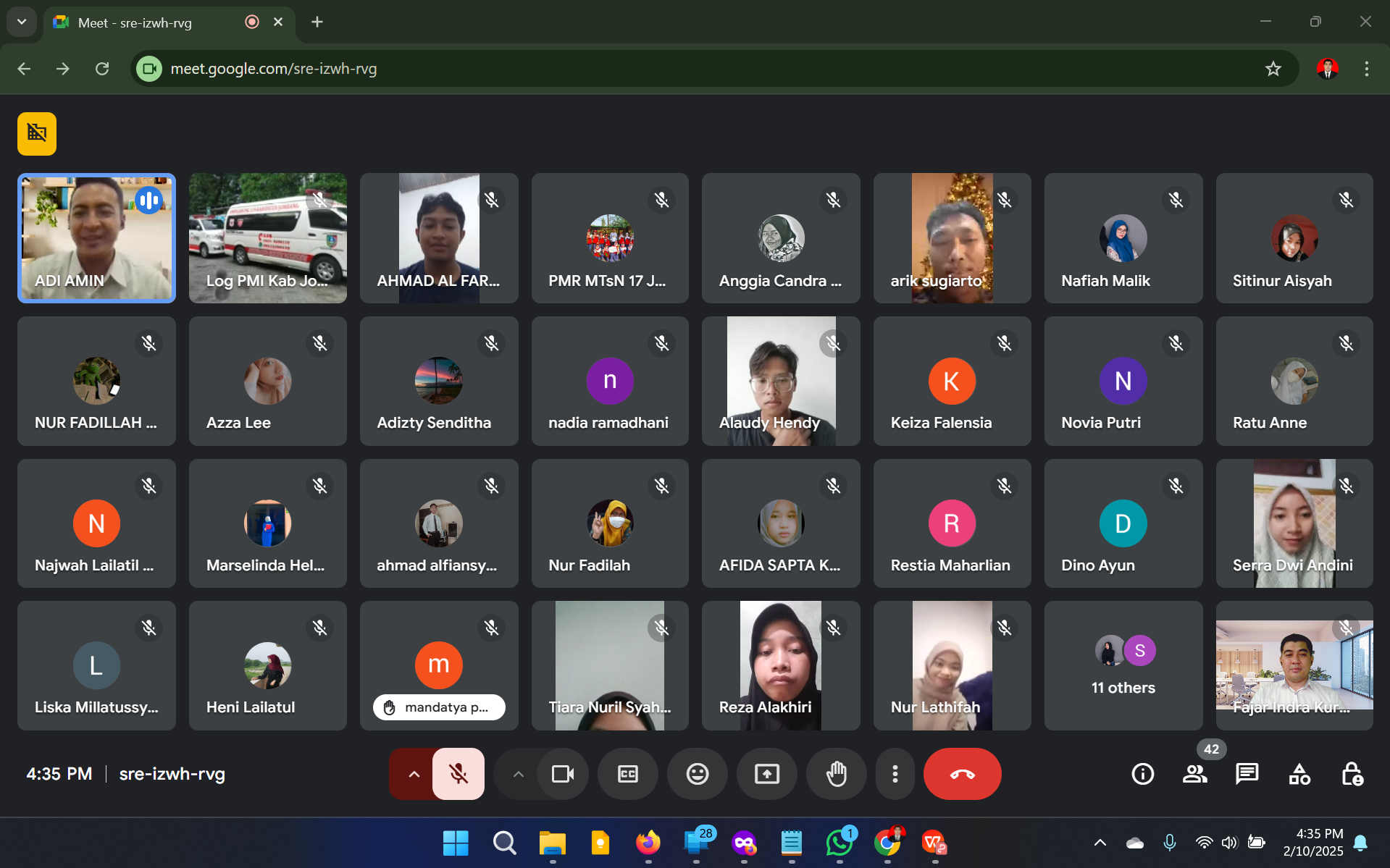 Jombang, 10 Februari 2025 – Palang Merah Indonesia (PMI) Kabupaten Jombang mengadakan sosialisasi standarisasi pelatihan relawan dan struktur kurikulum Palang Merah Remaja (PMR) secara daring melalui Google Meet pada Senin, 10 Februari 2025, pukul 15.30 WIB hingga selesai.