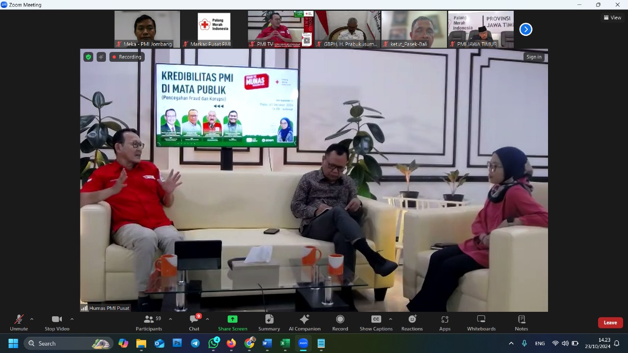 Rabu, 23 Oktober 2024 – PMI Kabupaten Jombang turut berpartisipasi dalam Live Talk Show “Road to MUNAS” yang diselenggarakan melalui Zoom Meeting dengan topik “Kredibilitas PMI di Mata Publik”. Acara ini dimulai pukul 14.00 WIB dan mengundang berbagai perwakilan dari PMI daerah untuk membahas langkah-langkah dalam menjaga transparansi dan akuntabilitas, terutama dalam situasi yang berisiko bagi kredibilitas organisasi.