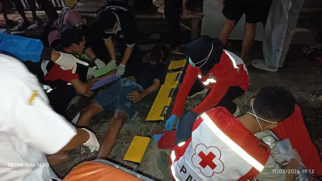 Korban diketahui bernama Tn. I, laki-laki berusia 16 tahun yang berdomisili di wilayah Gadingmangu, Kecamatan Perak, Kabupaten Jombang. Setibanya di lokasi, petugas PMI segera melakukan asesmen awal terhadap kondisi korban guna memastikan tingkat keparahan cedera yang dialami.
