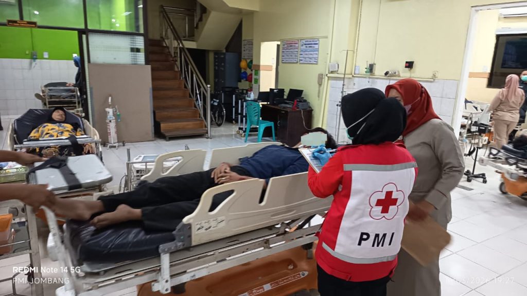 Setelah penanganan awal dilakukan di lokasi kejadian, korban kemudian dirujuk menggunakan ambulans PMI menuju RSUD Jombang untuk mendapatkan penanganan medis lebih lanjut. Selama proses evakuasi dan perjalanan menuju rumah sakit, petugas tetap melakukan pemantauan kondisi korban secara berkala guna memastikan keselamatan pasien.