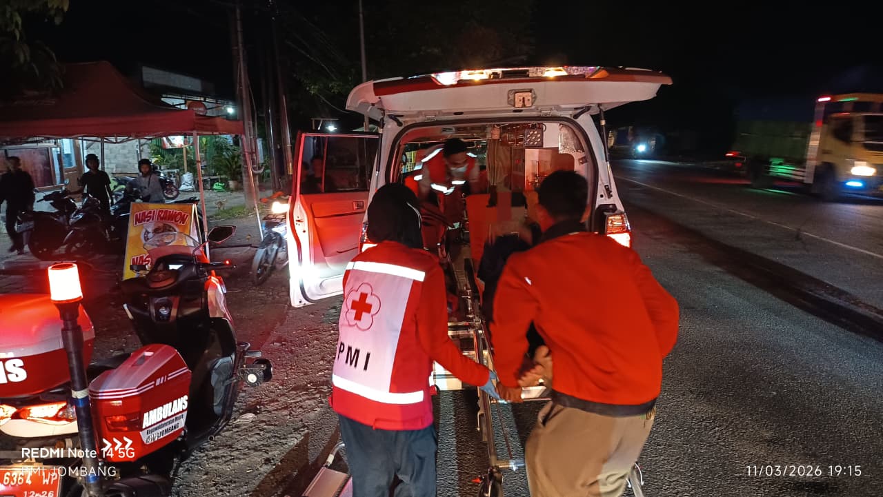 Relawan Palang Merah Indonesia Kabupaten Jombang melaksanakan respon cepat terhadap kejadian kecelakaan lalu lintas (KLL) yang melibatkan kendaraan roda dua pada Rabu, 11 Maret 2026. Kejadian tersebut terjadi di wilayah Simpang Tiga Ngrandu, Tunggorono, Kabupaten Jombang pada malam hari sekitar pukul 19.04 WIB.