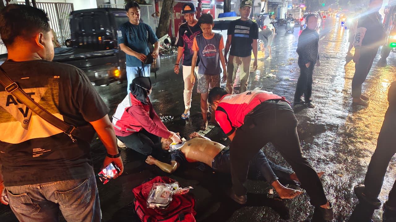 PMI Kabupaten Jombang Respon Cepat Kecelakaan Lalu Lintas Roda Dua dan Roda Empat di Jalan Gus Dur
