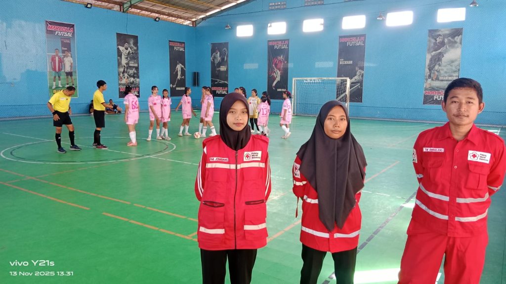 JOMBANG — Palang Merah Indonesia (PMI) Kabupaten Jombang kembali menunjukkan komitmennya dalam memberikan pelayanan kemanusiaan dengan menurunkan tim relawan pada kegiatan Grida Futsal Competition 2025 yang digelar oleh SMA PGRI 2 Jombang. Turnamen futsal yang berlangsung selama lima hari, mulai 12 hingga 16 November 2025, ini dipusatkan di Marsela Futsal dan Lapangan Grida, serta diikuti ratusan peserta dari berbagai sekolah.